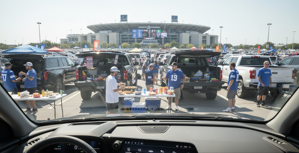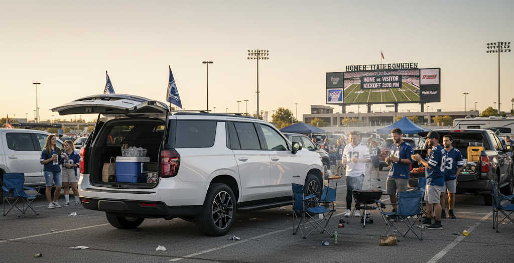 Tailgating success requires enough space for coolers packed with ice-cold beverages, grills ready to cook pre-game burgers, folding chairs for the squad, and team flags that transform parking lots into personal fan zones.