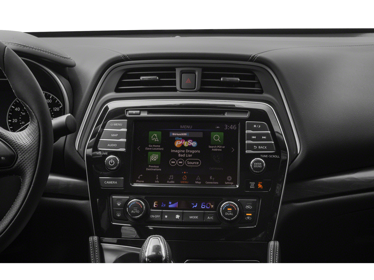- Radio: AM/FM/CD Bose Audio System -inc: MP3/WMA/AUX reader, 11 speakers, Bose Centerpoint 2.0, NissanConnect featuring 8" color display w/multi-touch control, Apple CarPlay, Android Auto, 2 front illuminated USB connection ports (1 Type-A, 1 Type-C), Bluetooth® hands-free phone system, hands-free text messaging assistant, streaming audio via Bluetooth®, voice recognition, Siri Eyes Free, SiriusXM radio, SiriusXM advance audio features, NissanConnect Services powered by SiriusXM, Wi-Fi hotspot, Nissan door to door navigation, SiriusXM Traffic, SiriusXM Travel Link, display commander and 7" Advance Display Assist Display (ADAD)
