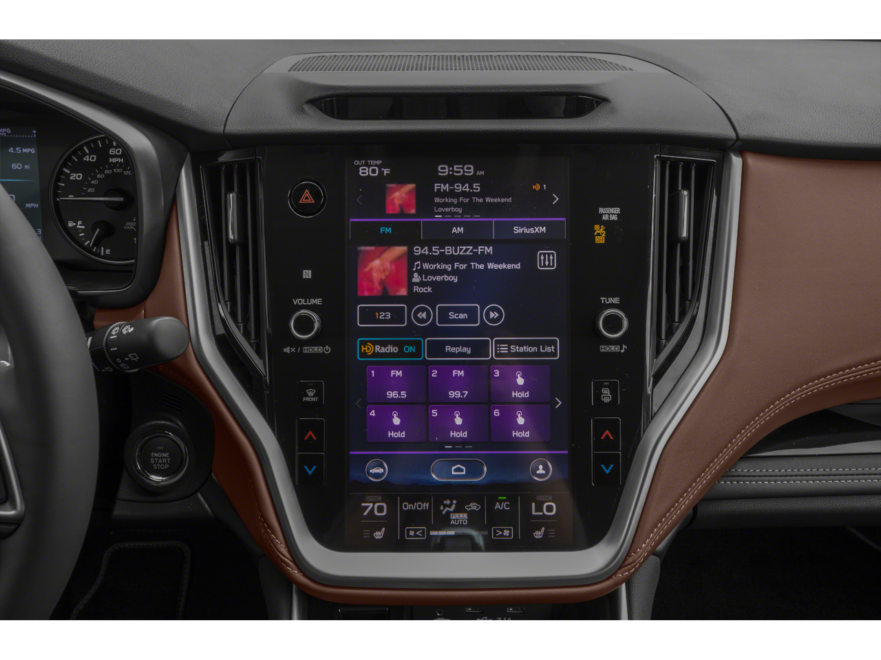 - Radio: Subaru STARLINK 11.6" Multimedia Nav System -inc: AM/FM stereo, HD Radio, multi-touch gesture high resolution display screen, voice activated controls and navigation, Bluetooth® audio streaming and hands-free phone connectivity w/SMS text messaging (refer to subaru.com for cell phone compatibility), Near Field Communication (NFC), iPod control capability, SiriusXM All Access radio (4 months free trial/subscription required after), SiriusXM Traffic (3 years free trial/subscription required after), SiriusXM Travel Link (3 years free trial/subscription required after), smartphone integration: Android Auto, Apple CarPlay and STARLINK cloud applications (refer to subaru.com for app availability), USB and Over The Air (OTA) audio system update, USB/Map Over The Air (MOTA) TomTom navigation system update (3 years free map updates), 576 watt harman/kardon surround sound system w/12 speakers, 3.5mm auxiliary input jack and dual USB input ports
