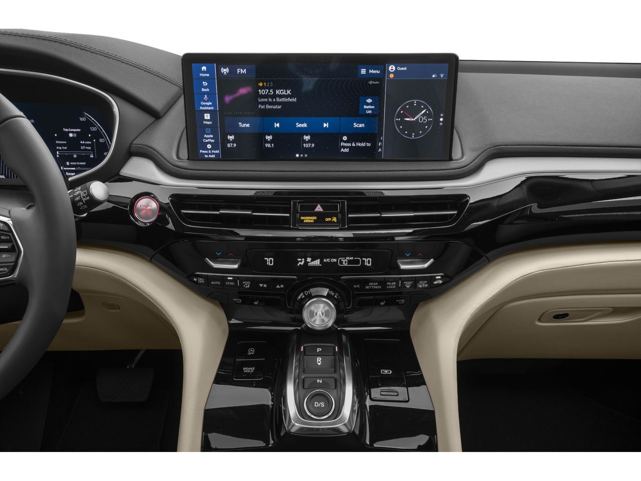 - Radio: AM/FM Acura Premium Audio System -inc: 11 speakers, 12.3" color touchscreen, Wi-Fi hotspot capability, natural language voice recognition, AcuraLink connected services, AcuraLink security and remote services (3 years), wireless Apple CarPlay and Android Auto compatibility, Alexa built-in, Google built-in, Bluetooth® HandsFreeLink wireless telephone interface, HD Radio, USB audio interface, Bluetooth® streaming audio and Speed-Sensitive Volume Compensation (SVC)
